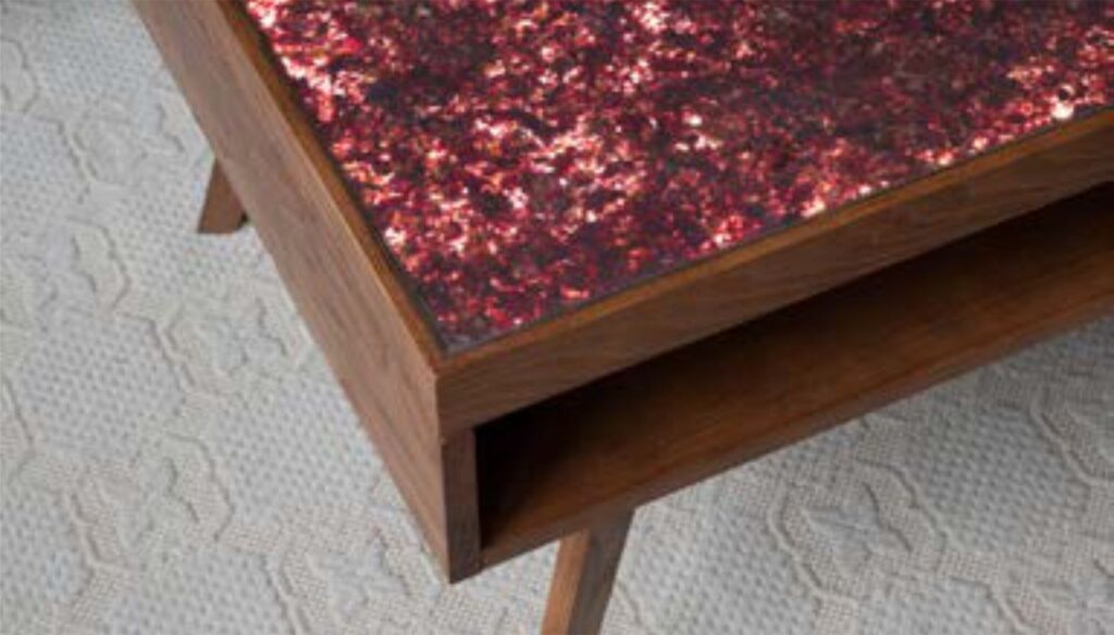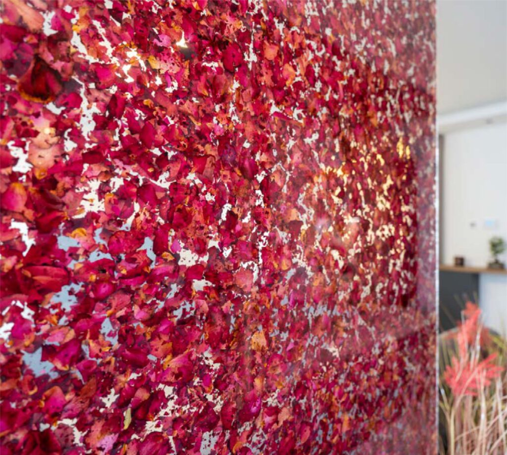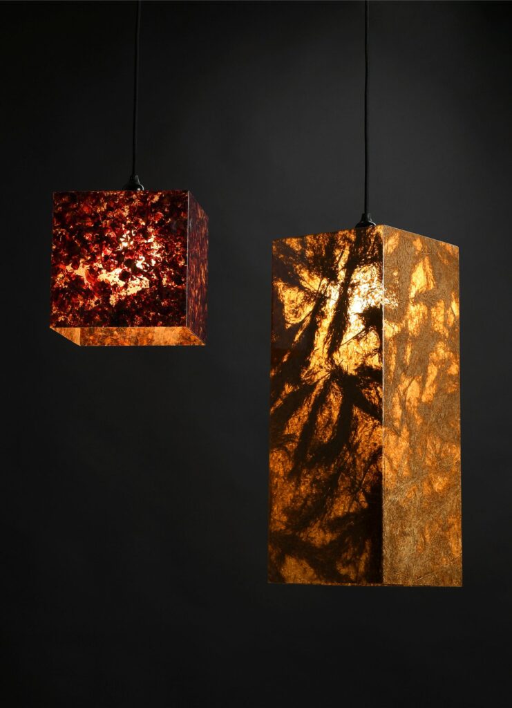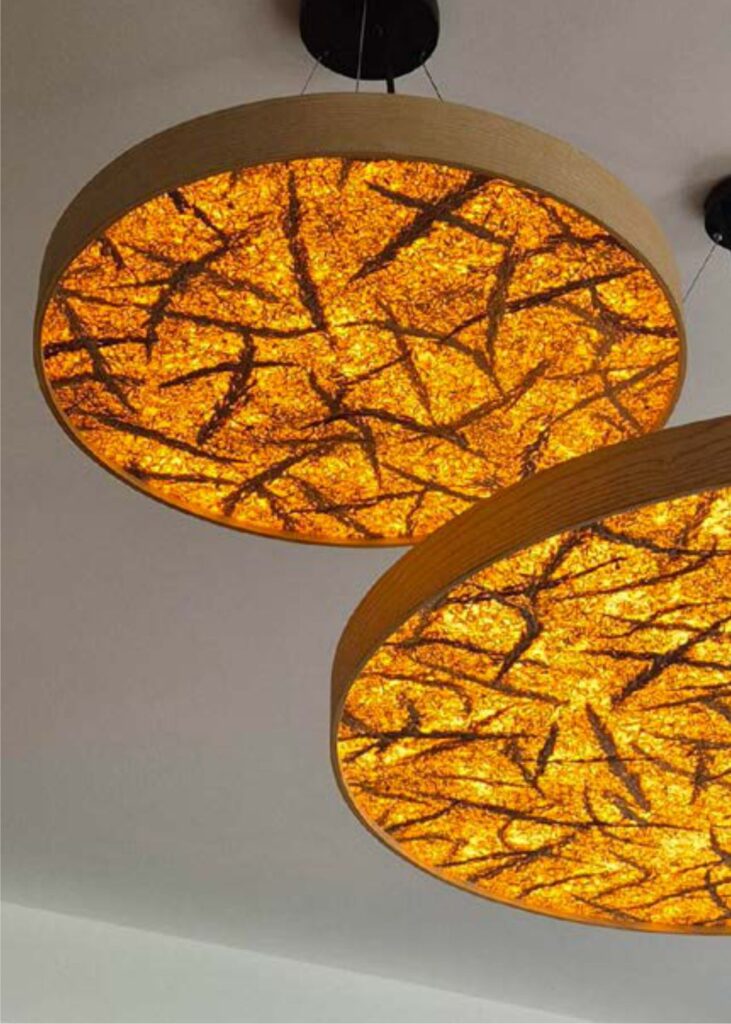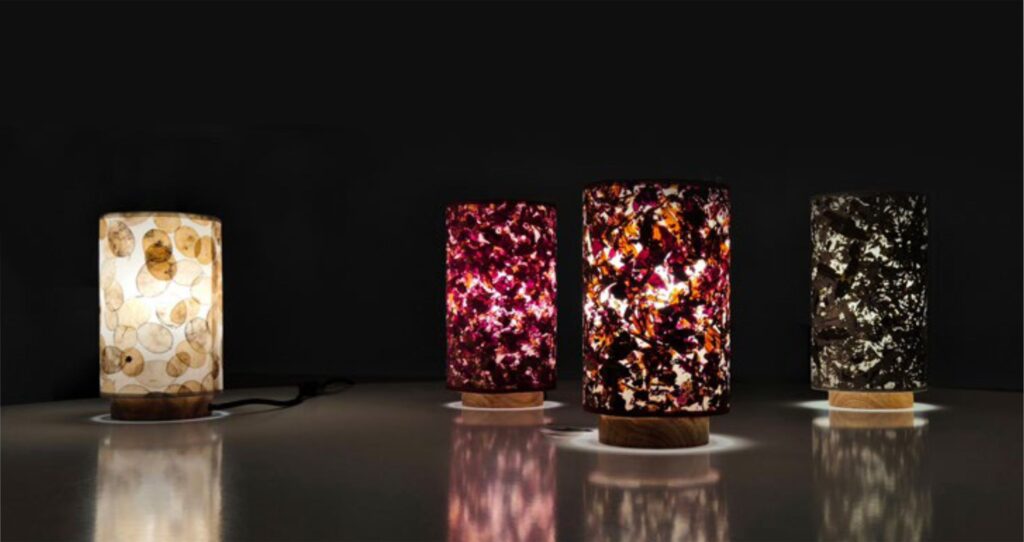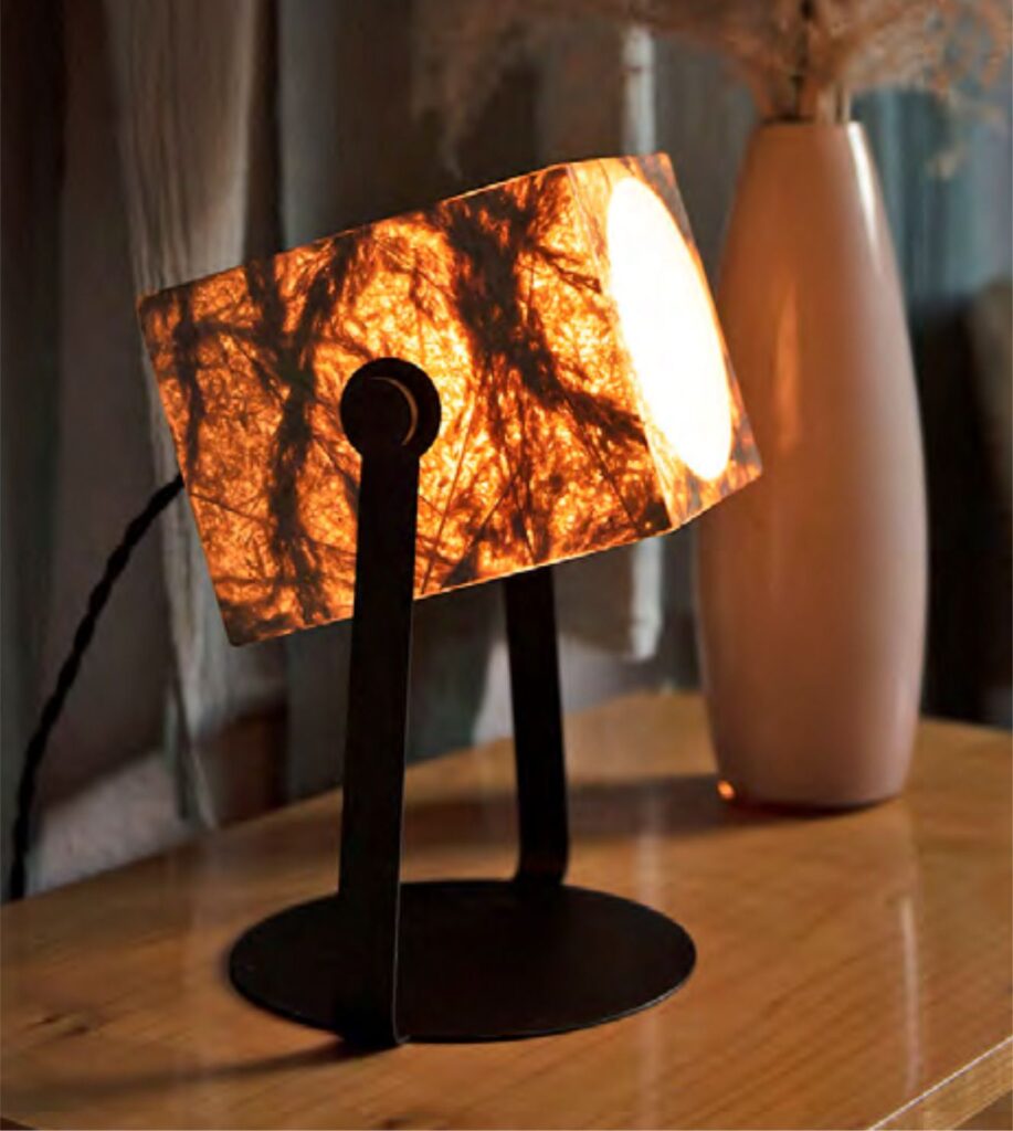 A TEXTILE egy hajlítható, könnyű zöld kompozit, amelyben a növényeket textilrétegekkel kombináljuk. A textil típusa és színe, valamint a növényi részek mennyisége igény szerint testreszabható.